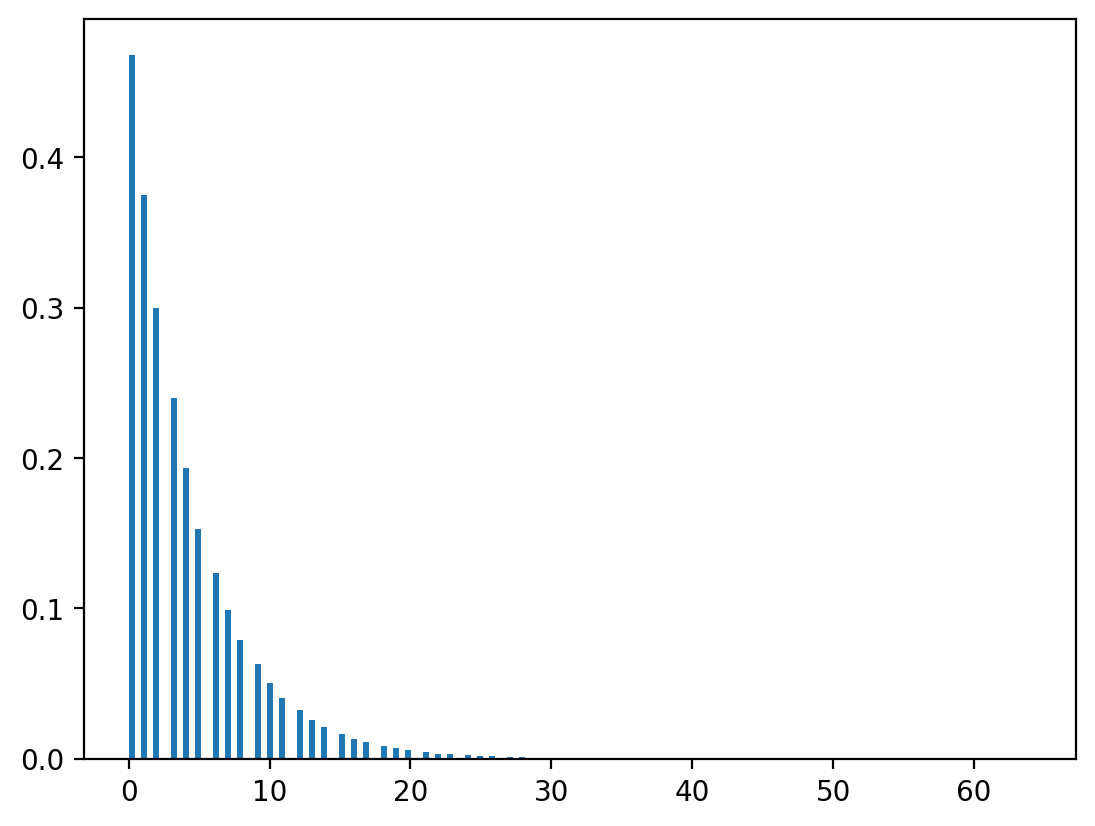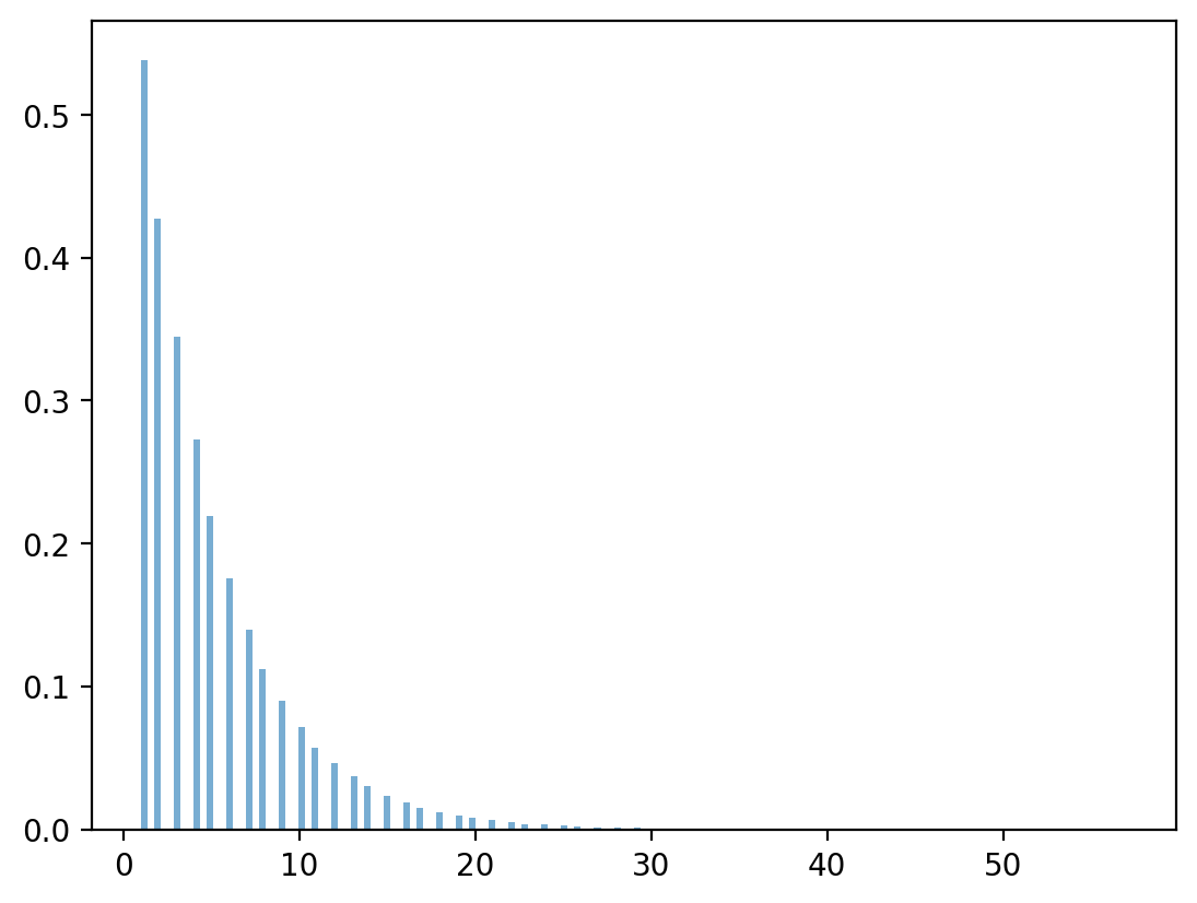 We can verify that \(x\) is indeed geometrically distributed by the following numpy program.